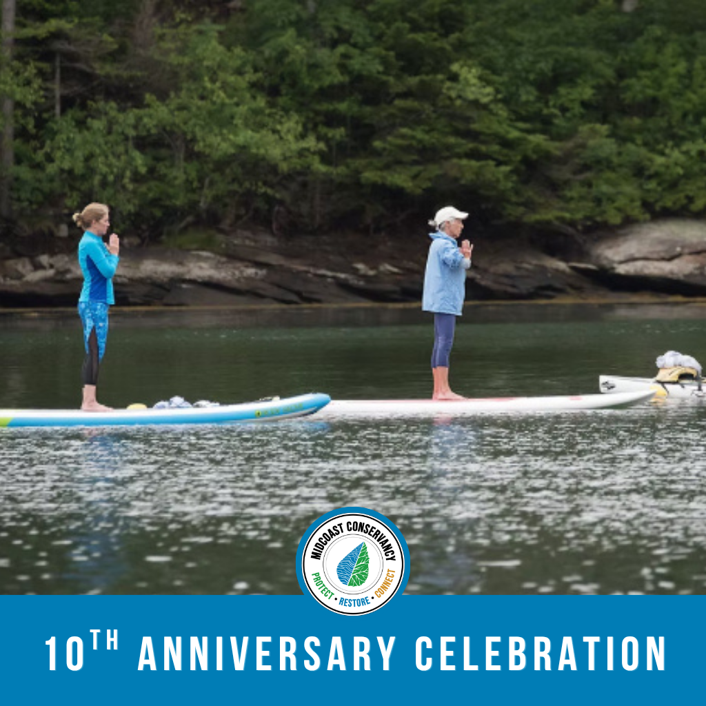 Participants will hike 1.4-miles to Little Dyer Pond, where they will be given some preliminary guidance before venturing onto the water with their boards, for the special experience of practicing yoga afloat. Please wear comfortable shoes, bring water and wear clothing you don’t mind getting wet. Midcoast Conservancy will provide the Stand Up Paddleboard.