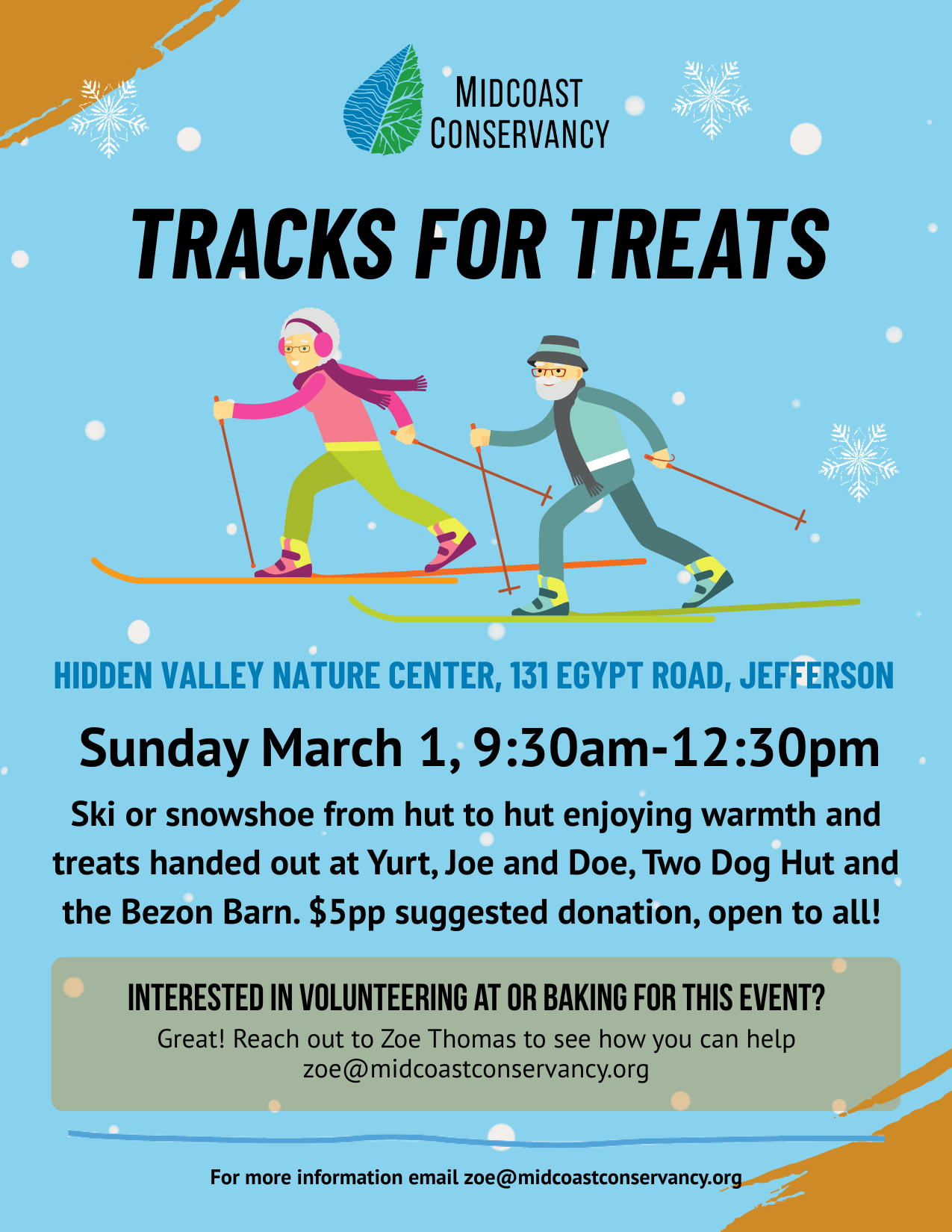 Volunteer bakers and hut tenders needed! Want to make something to be shared at a hut or interested in tending one of the huts along the way? Reach out to Zoe Thomas zoe@midcoastconservancy.org.